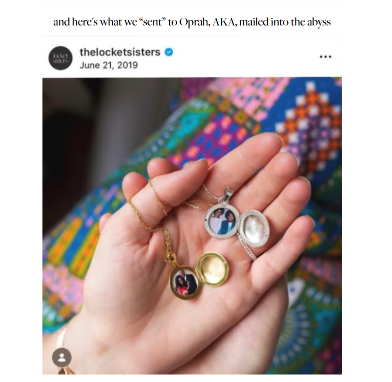 Earlier this week I got an email saying “Oprah Daily included The Silver Little Oval Locket in a story titled, The 24 Best Mother’s Day Gifts for Your Sister, Even If She’s Impossible to Buy For."