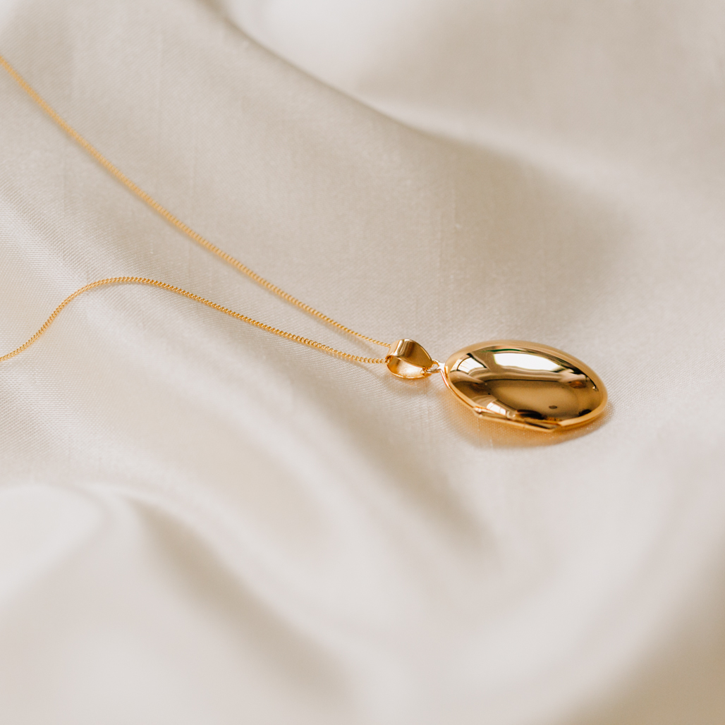 - gold oval, vertical pendant locket with rounded edges